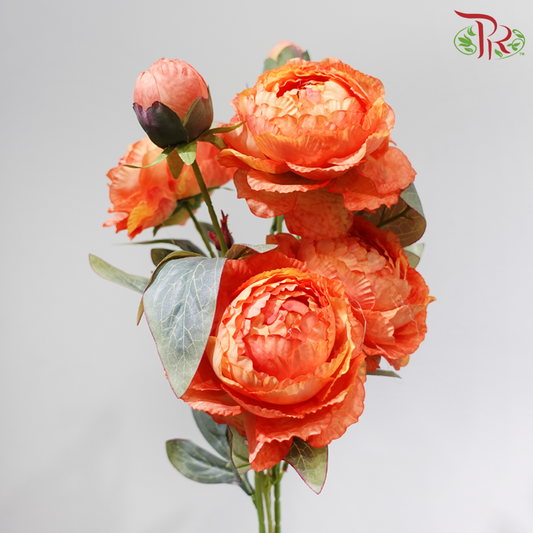 70cm - 8 Heads Artificial Peony Spray - Orange (Per Stem)